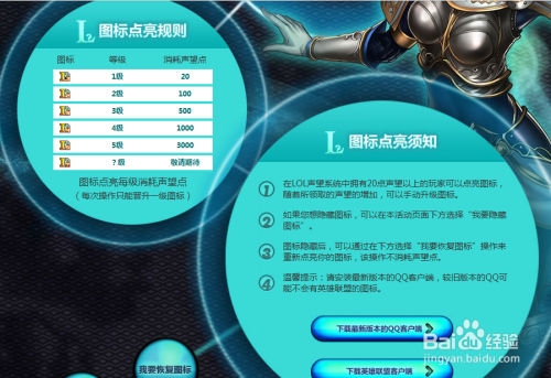声望要求:想点亮图标英雄联盟此款游戏必须开着,并且得进去自己所在的区。点击最小化后就回到英雄联盟的网页,进入”点亮图标“选择好所在的区域。如果没声望就会出现图三的情况。所以的先有20点声望升第一级!点击“前往声望系统领取声望“