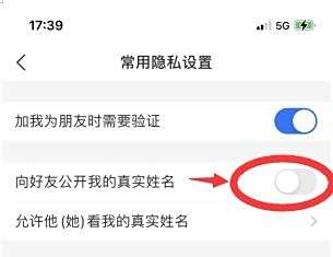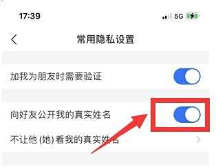 如图,【向好友公开我的真实姓名】功能已关闭,设置完成。