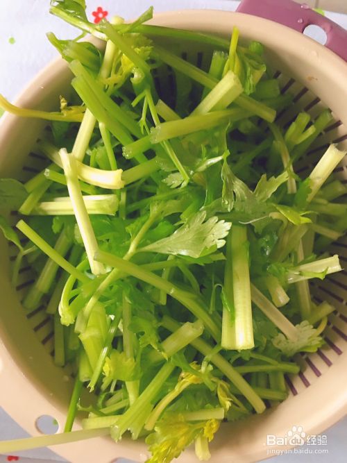 芹菜切好,留了少许的叶子,这样感觉会更好吃