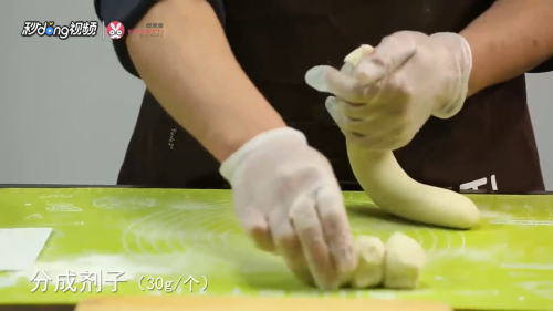 面团搓成长条,分成剂子,擀成圆薄饼状。