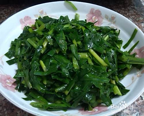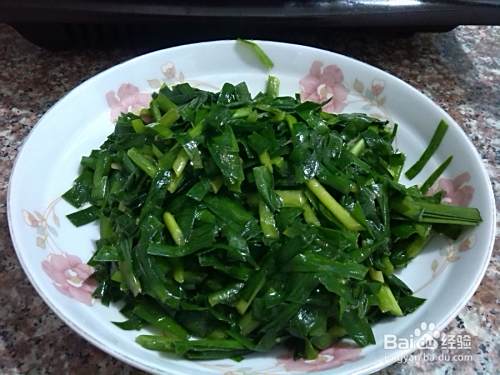 切好的韭菜,韭菜根部和韭菜叶子要分开盛放,不要弄混了。