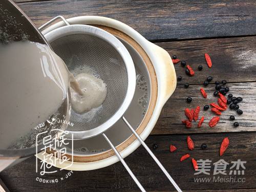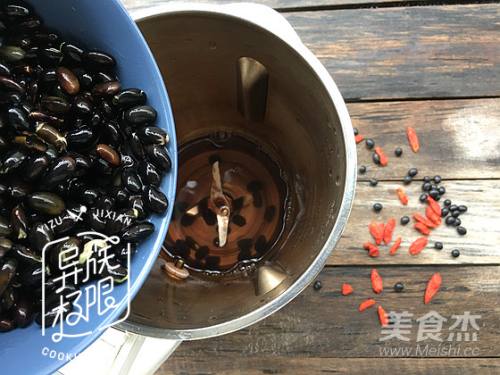 6浸泡后的黑豆连同水(约1000ml)一起倒入豆浆机中,打成浆并煮熟。