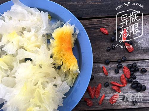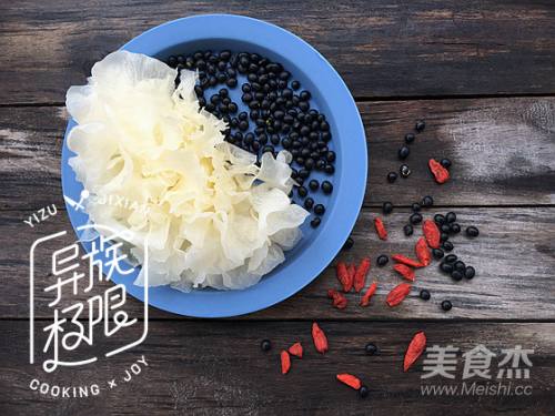 1食材:鲜银耳半朵、黑豆50克、枸杞子少量。