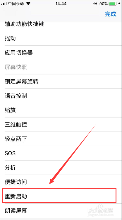 比如替换其中一个图标手势,点击手势功能键页面,翻到最后面就可以看到 重新启动,点击打勾选择,然后再点击右上角的完成即可,如下图