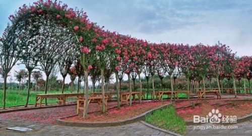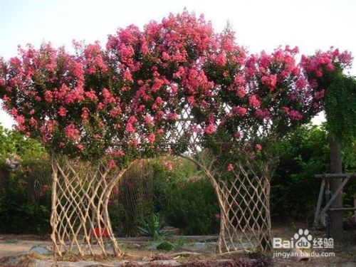 速生艳红紫薇造型完成后,钢筋骨架不用取出。为保证景观效果,必须频繁修剪。生长季修剪主要是去除嫩芽,短截花枝,花枝长度保持在10厘米至20厘米之间,太长的话开花时影响整体形状。
