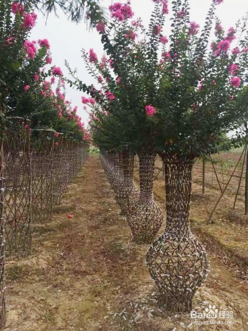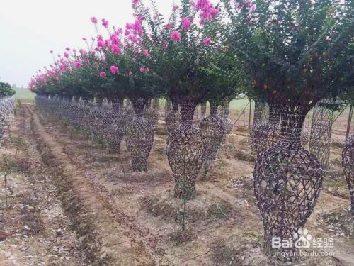 制作速生艳红紫薇造型,首先要做出模型的骨架,材料使用钢筋,把它编成动物、花瓶、造型字等形状,然后把速生艳红紫薇种在钢筋周围,围绕钢筋生长。