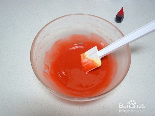 然后加入适量红色素,翻拌均匀,出来的颜色就是我们想要的蓝色了。
