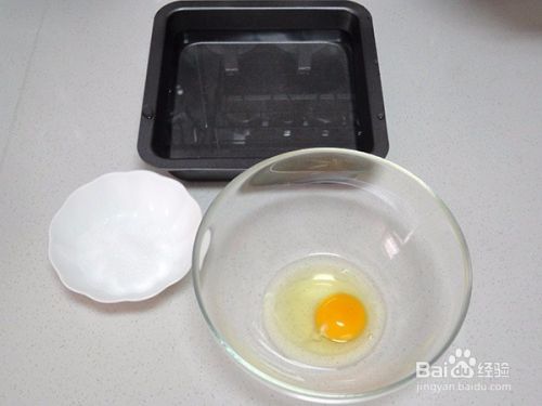 把鸡蛋打在无油无水的干净容器里。我怕整蛋不好打发,用了隔水加热法,在烤盘里倒入了适量热水备用(温度不用太高,六七十度左右)。