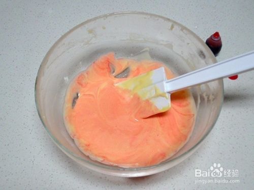 我怕颜色过深,是慢慢加入的,如果你对自己的食用色素比较了解,可以一次加入,避免过度搅拌。
