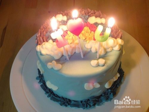 在此基础上,放上蓝色的蛋糕片,抹奶油,操作同上。