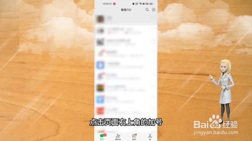 打开微信软件来到主页,点击页面右上角的加号。