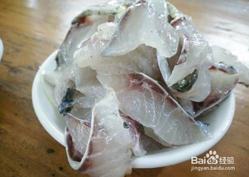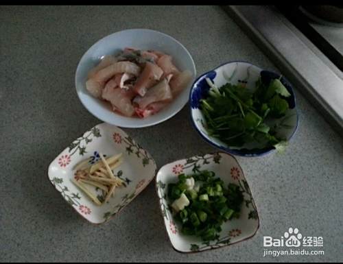 1、把鱼切成鱼片,把葱切成葱花,姜切成姜丝,香菜切小段备用。
