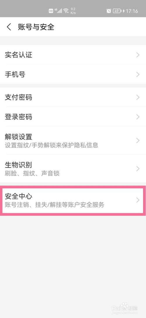 2、点击【账号与安全】,点击【安全中心】。