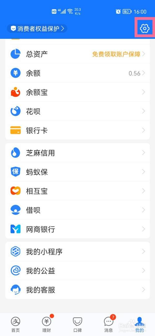 在支付宝【我的】界面点击右上角的【设置】。