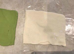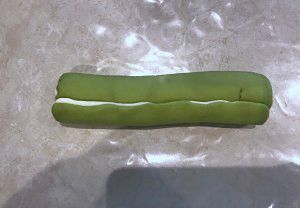 另一个面团也一样操作,关键是两个面片的宽长度基本相同。