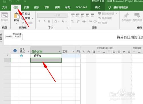 单击"确定"保存新任务,然后单击"下一步"移动到甘特图中的下一行。