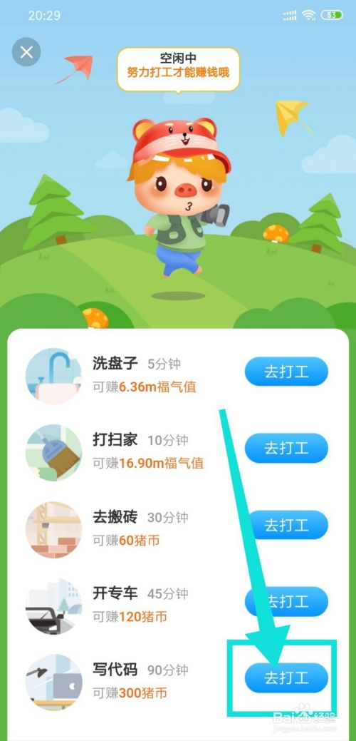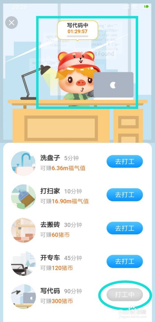第三、然后小猪便开始打工赚取猪币了,打工有工作时间;