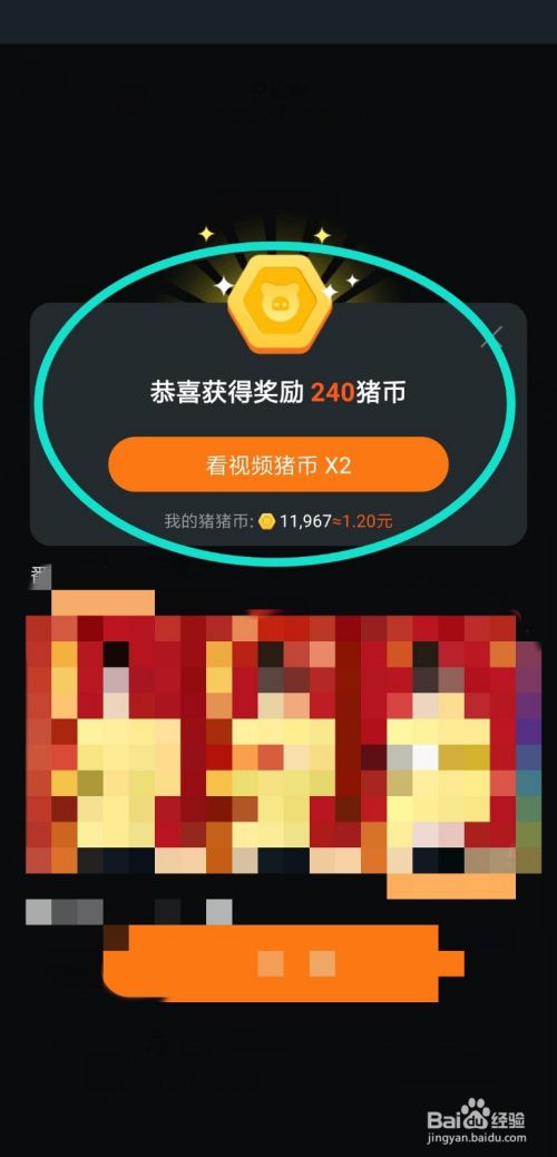 第五、然后就可以获得打工赚取的猪币了,看视频可以翻两倍。