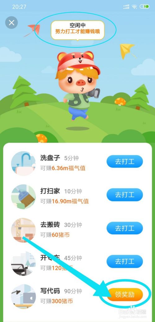 第四、当打工结束后,便可以在打工界面点击“领奖励”;