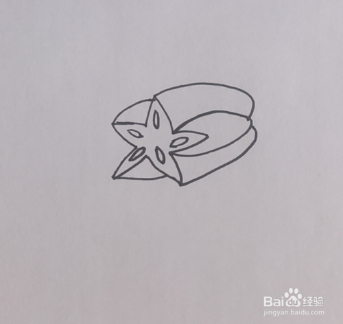 在五角星内部画出杨桃的种子。