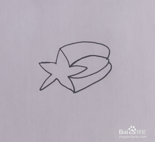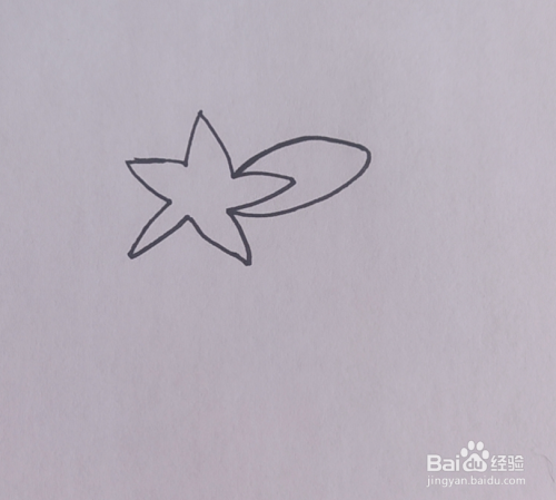 在五角星右侧的角后面画出一个椭圆形。