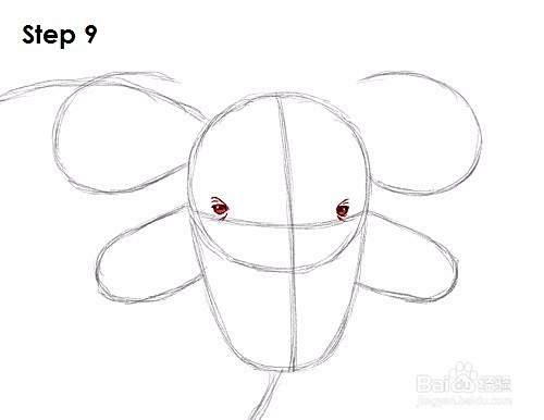 第五步:在头顶两侧画两个C形弧,作为非洲开普角水牛的指南。