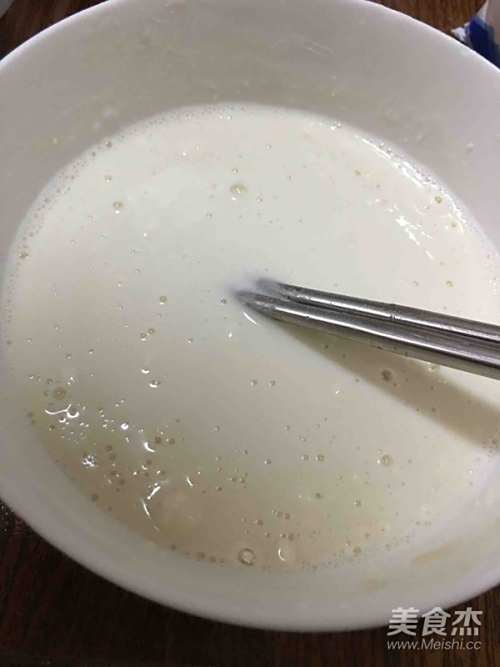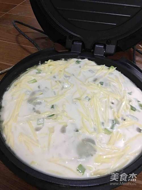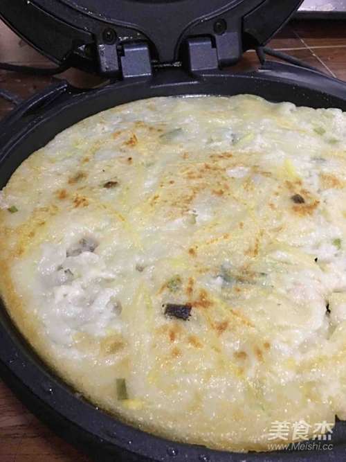 锅内放油烧热,倒入搅拌好的材料,平铺均匀。