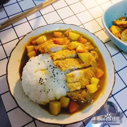 6:咖喱鸡排盖浇饭 先炸好鸡排,然后在浇咖喱
