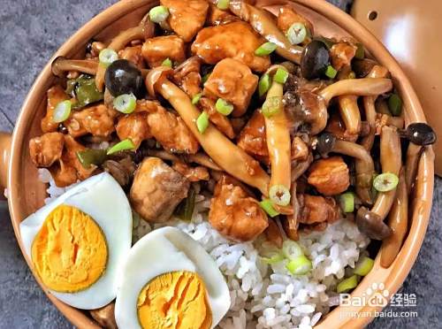 5:鲜菇盖浇饭 鲜菇炒熟加入酱汁