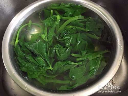 在盆里倒入温水,放入一勺盐,搅拌均匀后,将南瓜叶放入盆里浸泡10分钟,捞出来放在清水里洗干净即可。