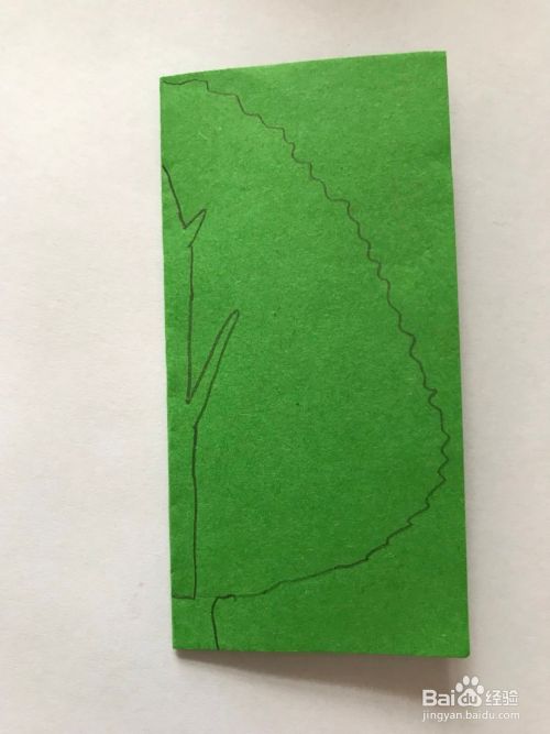 对折后沿着封边的位置画线,画出如下图形状,形状画得越好看剪出来的小树越漂亮哦。