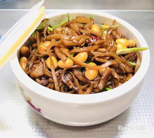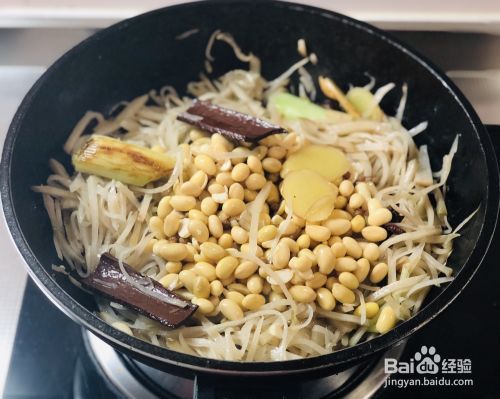热锅放花椒,桂皮,八角,葱姜煸香后放入芥菜丝翻炒变色后倒入黄豆继续翻炒。再倒入适量开水煮一下