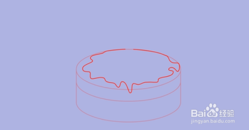 在椭圆的两边加一条线。用一条曲线连接这两条线,这是蛋糕的基本形状。