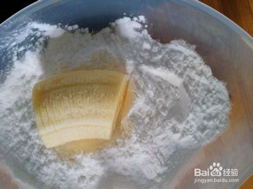 先让香蕉裹上一层薄薄的淀粉。