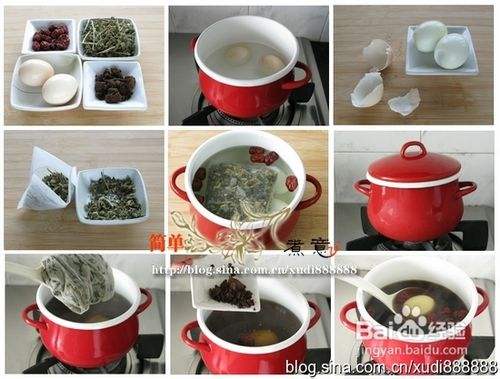 益母草装入料包,和鸡蛋、大枣一起下锅加清水炖煮;