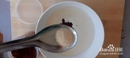 把打好的牛奶汁倒入碗中,打入一个鸡蛋,加两勺红糖,加酵母粉,搅拌均匀。