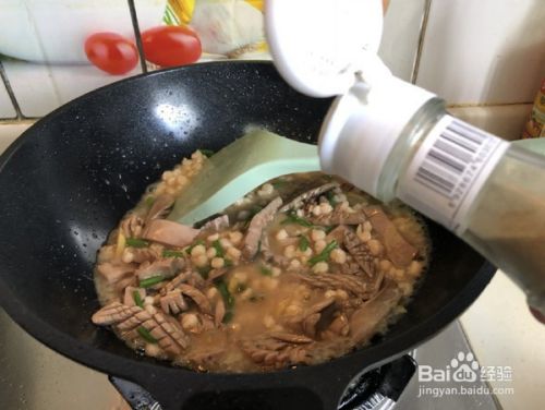 锅中煮沸水,加点姜片和葱段,倒入猪腰