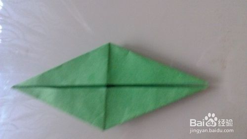 左右两侧沿中线对折,反面也一样的折法,把最上方的三角往下折。然后全部松开,用手把上面一层的纸撑开,沿刚才的折痕按压平整,背面也是一样方法折叠。