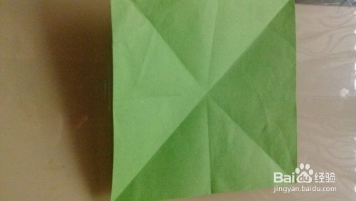 正方形折纸,先横向中线对折,然后再纵向中线对折,对角线对折(十字型对折二次)。然后展开,用手沿刚才的折痕按压成一个正方形。