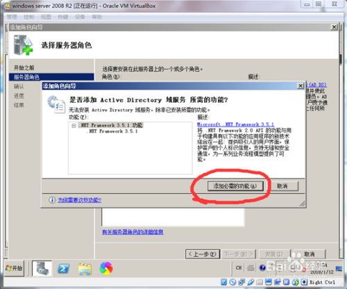 5、在服务器角色对话中中选择Active Directory域服务(勾选之后会有一个弹窗)。