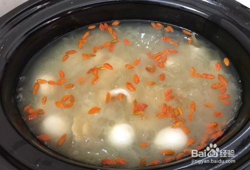 再煮20分钟就可以了! 因为这个糖水煮的时间比较长,枸杞太早放会煮得过烂,不好看!所以我觉得出锅前煮一二十分钟就行了! 喜欢红枣的也可以加几颗一起煮哟!