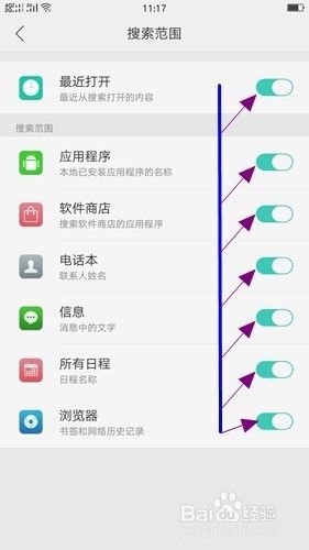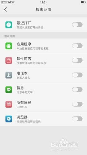 在“搜索”页面,按照您的需要选择要开启的搜索内容