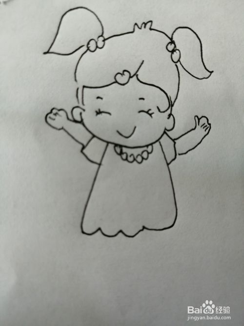 第四步,接着在可爱的小女孩的头部下面画出一条漂亮的小裙子和脖子上的小项链。