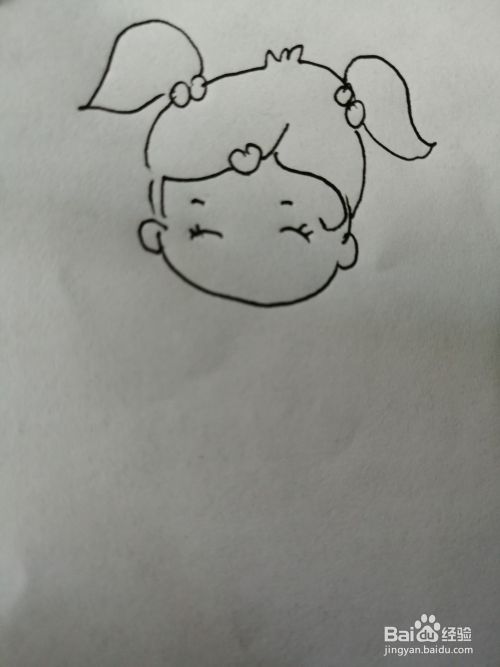 第二步,然后在可爱的小女孩的头顶画出两个可爱的小辫子。