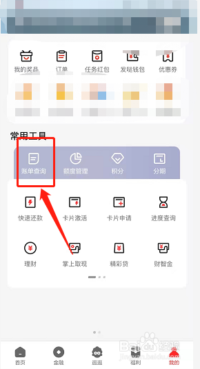 在信用卡我的页面,点击账单查询。