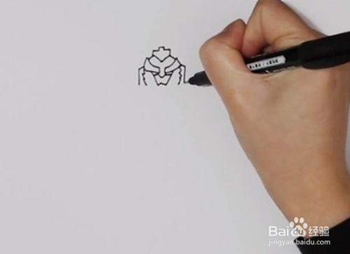 接着画出它的身体,胸部的非常的强壮,注意画出胸部的盔甲,两边画上它的手臂,手臂非常粗壮。