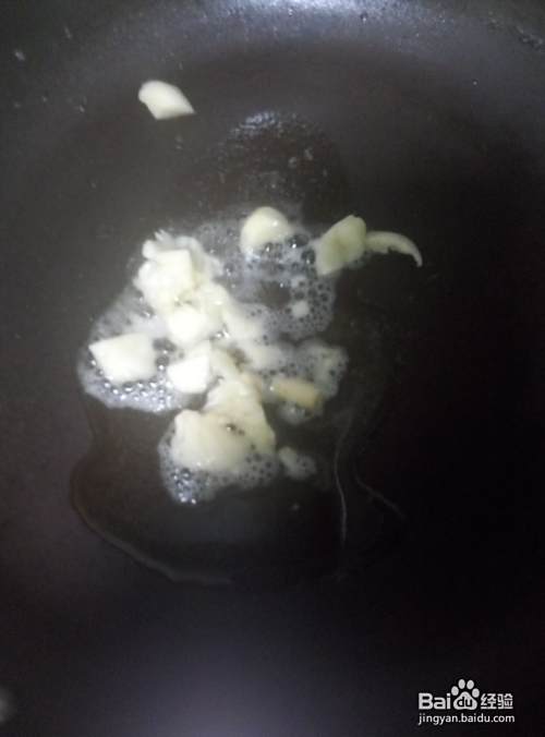 热锅加油,这油要比平常的菜多点才好吃(最好是花生油);放入蒜蓉爆香。