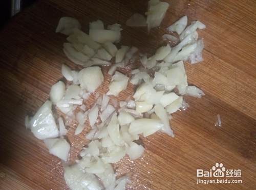 和这类食材最相配的就是蒜头了。用刀拍碎,切细。备用。