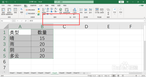 在EXCEL表格里,创建数据资料后,进入菜单栏上选择图表类型,插入到表格中,具体操作方法如下: