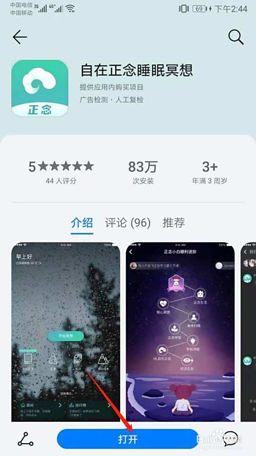 5、安装完成后,点击打开,就可以使用自在正念APP了。